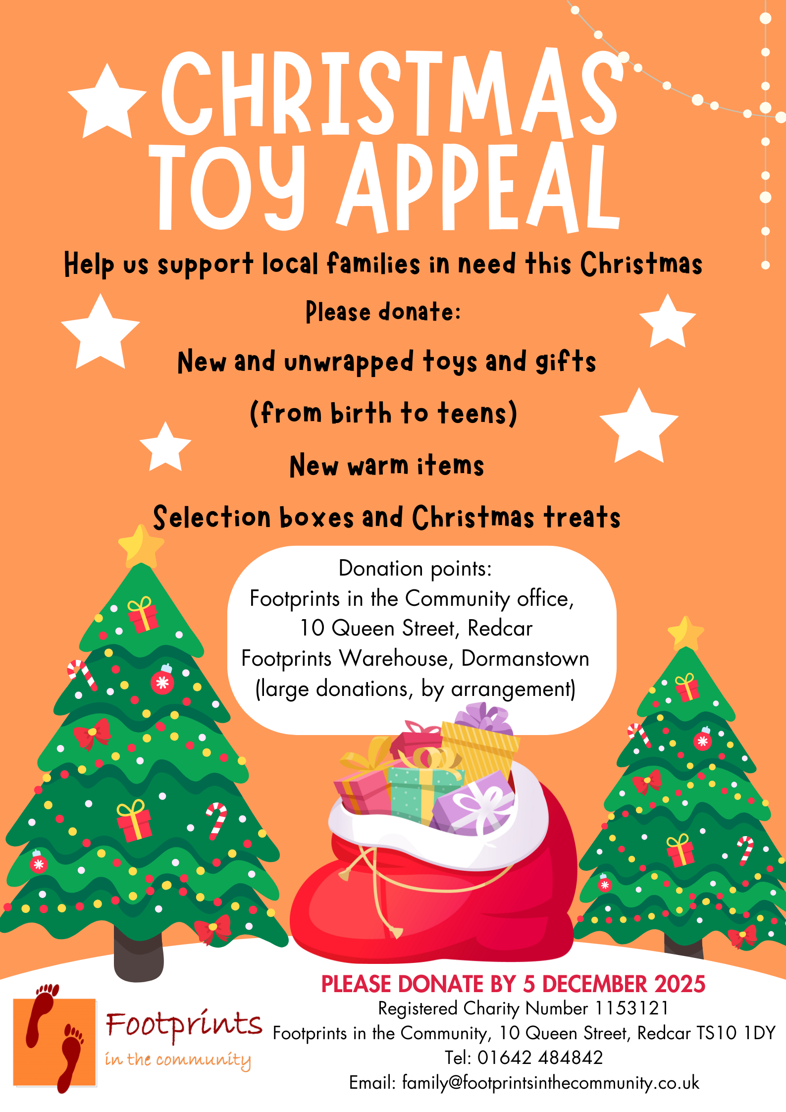 Please drop off your donations by 5 December 2025 and we will ensure that they reach those who are most in need this Christmas.